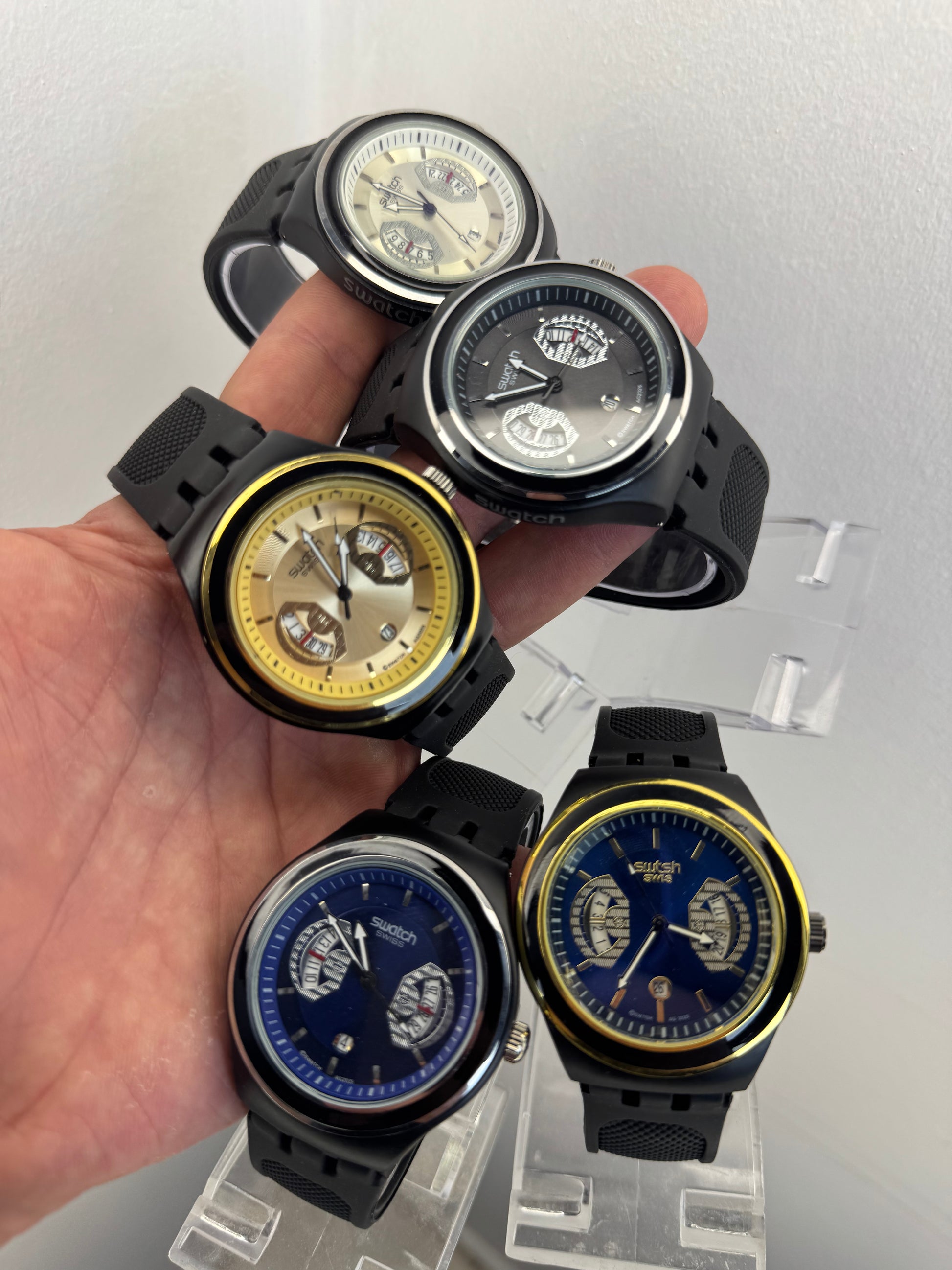 تلاتة ساعات مع بعض الوان مختلفة بسعر ممتاز لاتضيع عليك الكمية قليلة ساعة سواتش من السيليكون المتين بها الوقت والتاريخ بالوان جميلة وشكل جيد وعصري باقة من تلاتة بسعر ولا فالاحلام اطلب الآن